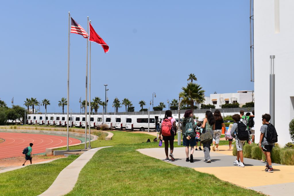 Due to limited seating, bus availability is not guaranteed for all students. Parents are encouraged to apply for the service as soon as they have a permanent home address in Rabat. Bus assignments are made at the start of the school year based on home locations.